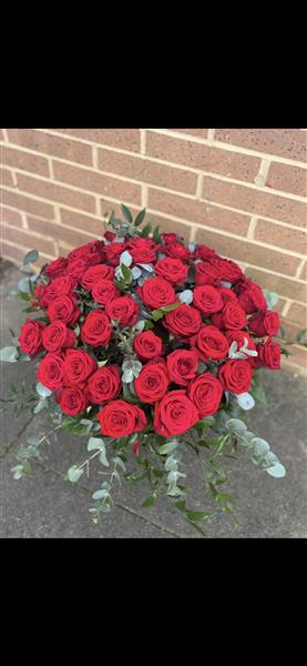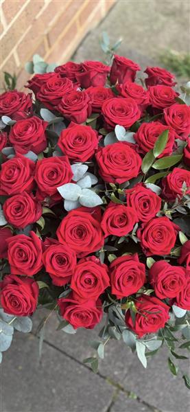 Show them how much you love them with a Luxury 50 Red Rose Handtied Bouquet with beautiful eucalyptus and ruskus. Presented aqua packed in a gift bag
