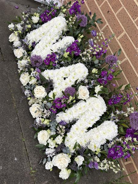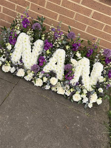 Nan Meadow Lettering, Based lettering on a meadow of flowers and mixed foliages, colourings can be changes, as well as the Nan, to Mum or Dad